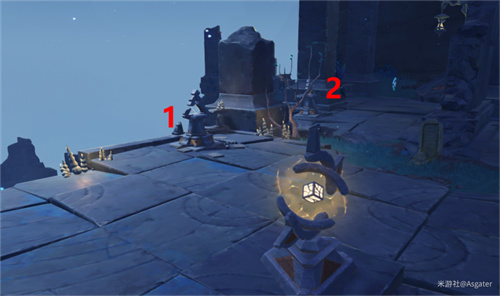 2、从该处锚点跳下,来到一处平台,将使用一旁的日月之轮切换至“白夜”状态;