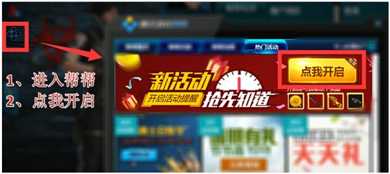 2、游戏内参与第一步:进入“帮帮精灵”-“热门活动”第二步:“点我开启”→绑定大区→自动领奖获取奖励(与上面步骤一样)