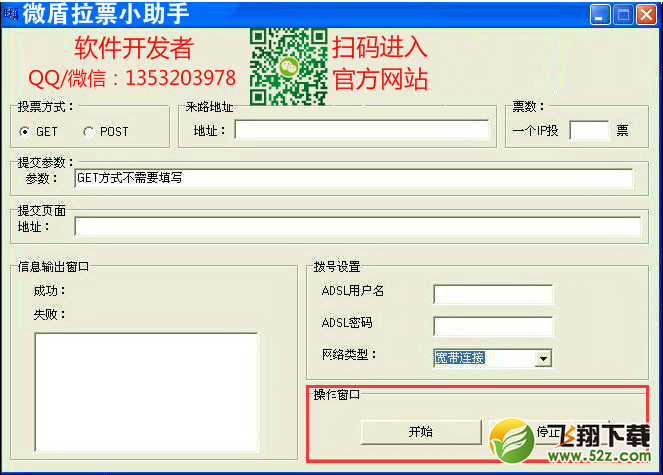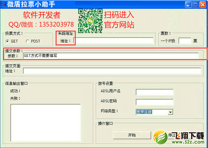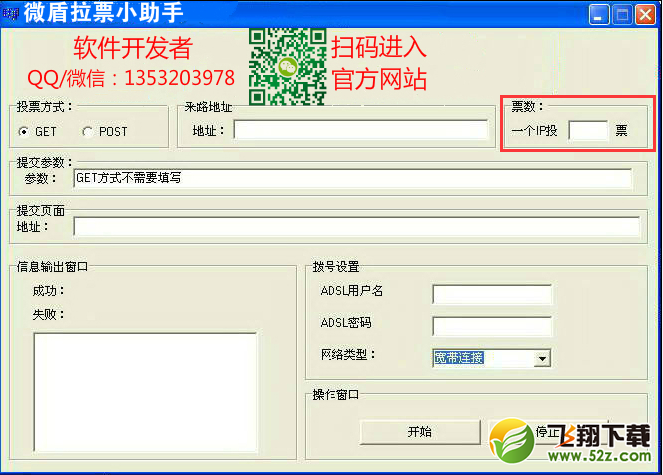 二、然后我们现在要来进行输入两次投票地址,为什么要输入两次呢,就打个比方我们现在演练的是这款《微盾拉票小助手》针对 投票第三方投票系统来进行操作的,那么这个“来路地址”我们要输入的就是 投票活动的首页链接,然后这个“提交页面”就是我们选手的个人投票页面,我们要分开来输入,因为软件运行起来的时候他是需要一个路径来进行的