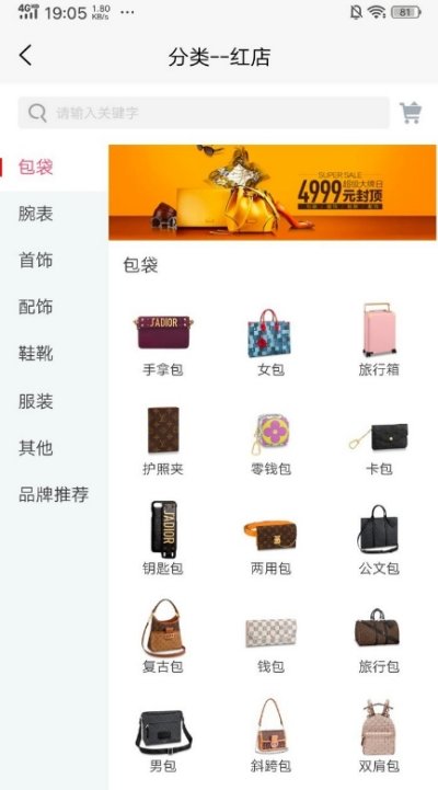 1、服装,电子产品,腕表等这些都可以找到,还可以在首页这里自主搜索;