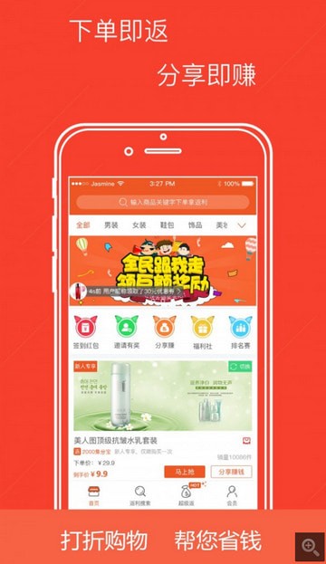 2、超级返: 精选知名品牌特卖,每日上新,超高返利。确保正品、确保特价、限量抢购。