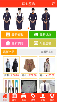 职业服饰——为您提供最新的职业服饰资讯!职业服饰为您提供了最新最全面的职业服饰信息,其中包括职业服饰资讯、货源中心、行情中心、企业中心、服务产品、商务中心等,功能齐全。职业服饰以橙色为主色调,给人以清爽、纯净的感觉。该客户端向广大客户展示了一个大型的职业服饰移动互联网门户平台,以便捷的游览方式,强大的应用功能,最新的资讯信息,为广大客户展示了一个内容丰富的平台,不断的为您更新,让您爱不释手。
