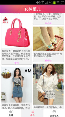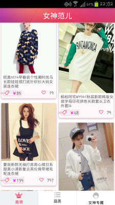 女神范儿是一款专为年轻爱美女性提供当下最潮流最时尚最粉粉的着装。不管你是日系还是韩版,无论是小洋装,还是女神范儿,中性范儿,这里应有尽有。我们帮您轻松解决着装打扮的烦恼,让你的男友目不转睛,让你的同学同事羡慕不已,让你绽放出青春最美的风采。无论你是小个子,老高妹,还是平胸,大胸胸,小粗儿腿,完美身材,上班族,学生妹儿,我们都有合适你的服装。走过路过千万别错过,青春美丽在我们这里,选择在你那里,让自己充满女神范儿,下载吧!!!!!
