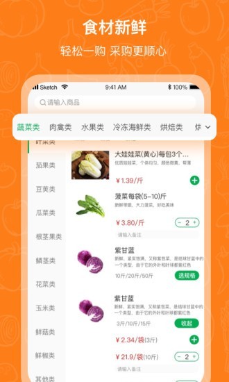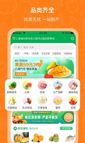 1、平台app主打蔬果菌菇、米面粮油、 牛羊肉禽、调味餐料、海味干货、冷冻水产、环球海鲜、烟酒茶饮、地方特产、进口食品等10几大品类;