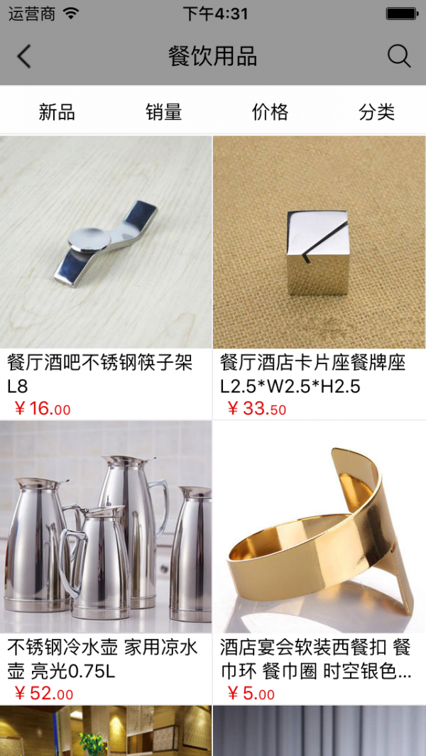 酒店用品采购商城APP手机客户端是一款实用性信息平台,集玻璃器皿、餐饮用品、自助餐用品、西餐用品、厨房用品、酒水食品等多个功能于一体。