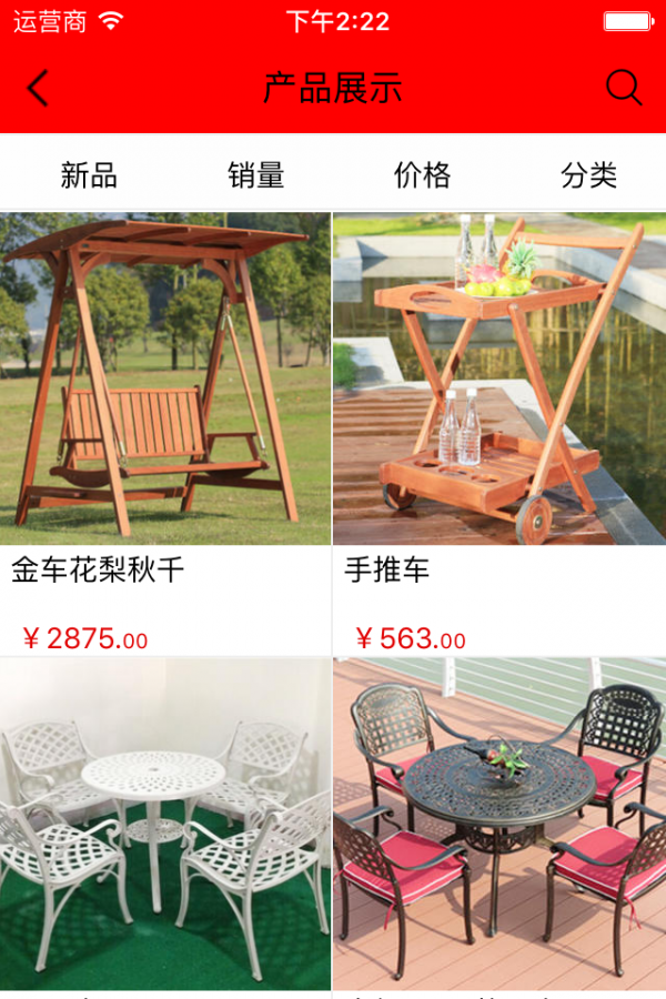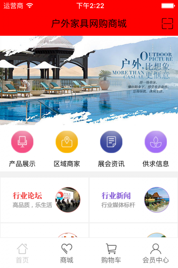 户外家具网购商城app是一款电商购物应用,户外家具网购商城app为用户打造一个家居购物商城,用户可以通过软件了解大量户外家具信息,为用户选购家具提供便利。