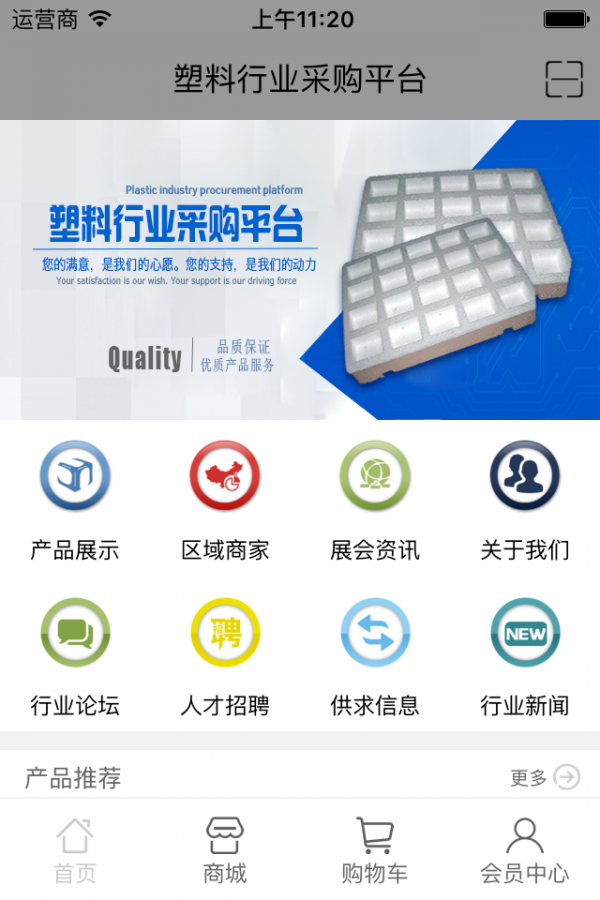 塑料行业采购平台是一款最新进驻塑料产业的APP,此APP有着产品、资讯等相关资料。客户可通过使用APP实现对产品的购买,对新闻的认知,以及对近年来展会开展情况的大体了解。大大地增加了客户的体验性以及便捷性。