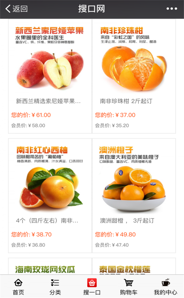 搜口网是专为用户推出的满足其饮食消费和线上购物需求的软件,目的打造绿色、健康、安全、价优的食品联盟。具有商品搜索、浏览、购买、支付、收藏、物流查询、退换货等在线功能,为您创造健康生活。