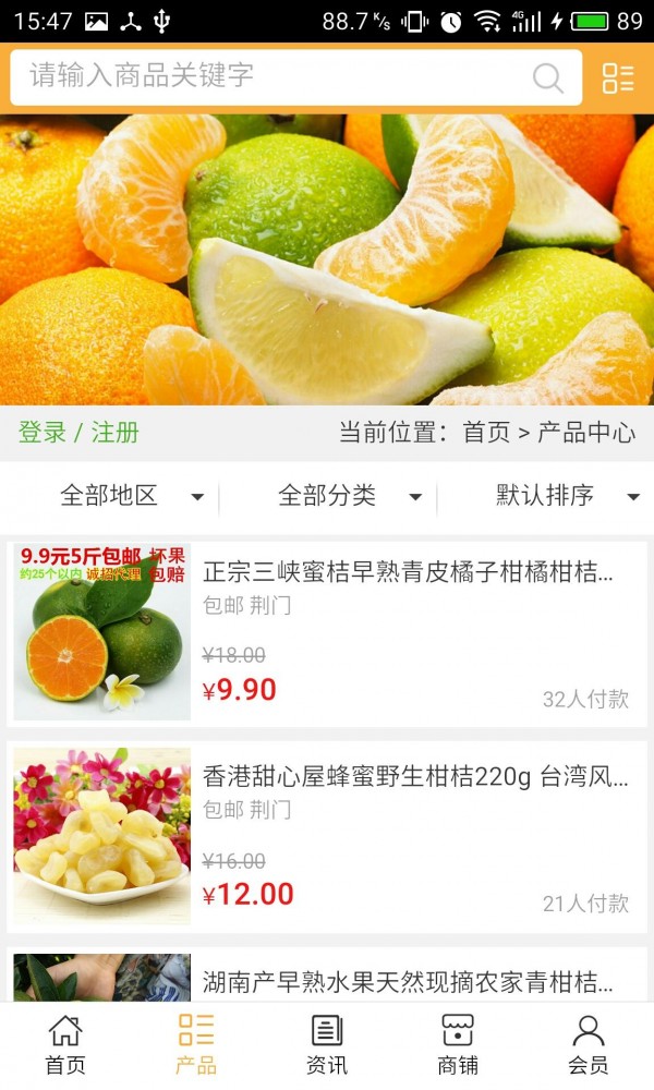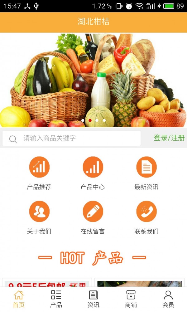 湖北柑桔app不仅具备购物、查询订单、搜索商品、行业资讯和产品评价等 长用功能,而且还实现了手机版特有的会员注册登陆、广告位、招商开 店等功能。