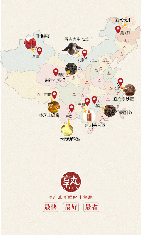 熟啦app是一款网络购物应用,专为大家提供各种来自原产地的新鲜农产品,随时随地,想购就购,详细分类,让你快速找到自己想要购买的商品,尽享移动购物生活。
