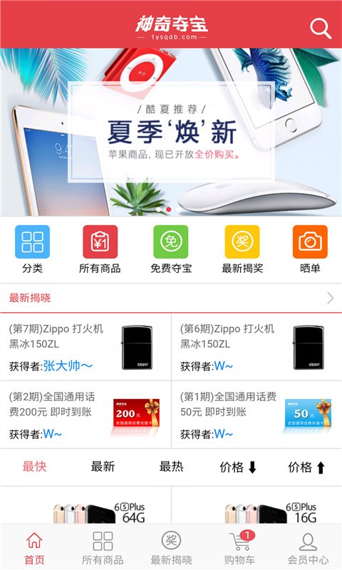 神奇夺宝app是一款有趣的购物软件,丰富商品,产品类目齐全,只需极少费用就有机会获取心怡的商品,感兴趣的朋友快来下载体验吧!