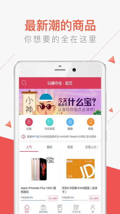 玩赚夺宝app是一个热门好玩的夺宝购物平台,加入玩赚夺宝app,只需1元,你就可能买到iphone6s。玩赚夺宝app,一块钱,开启新梦想!开启一块钱即可云购的新模式!