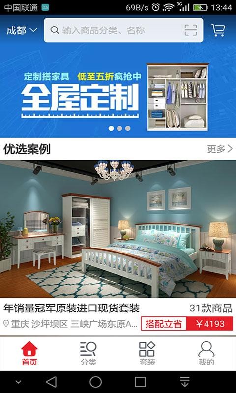 从材质上,你可以在优家购家具商城选购:实木家具、红木家具、定制家具、原木家具、板式家具、松木家具、柏木家具、木制家具等不同材质商品;
