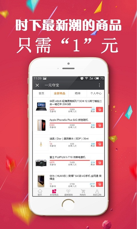 【安全支付更安心】 使用多种安全可靠的支付渠道,保障用户在线支付安全性。钱,只能是用来夺宝的! 给1元一个机会,天上就有馅饼儿掉!