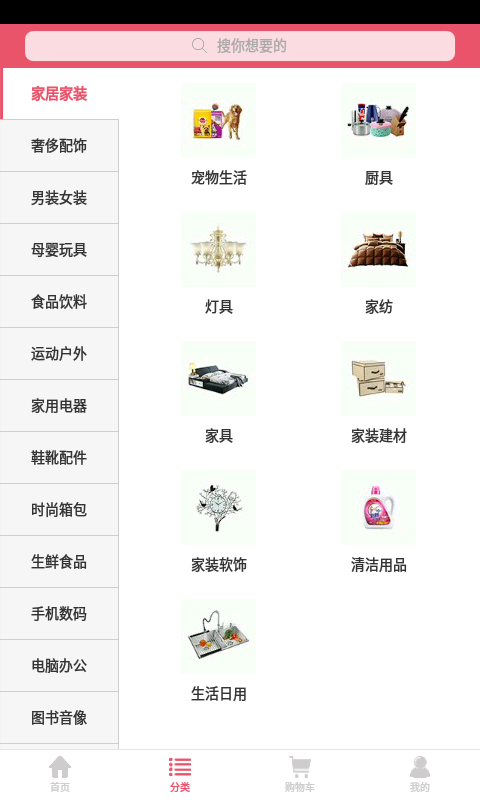 久惠商城1.0版本.这个版本共有:首页.分类,购物车,我的,等四个大模块.有着良好的体验效果,清新的UI风格.