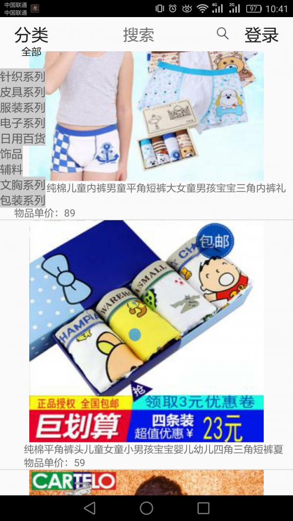 1、商品的基本展示,还有分组展示,如果商品过多有下拉刷新。
