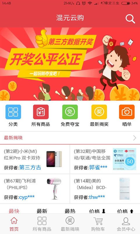 混元云购app是一种新型的1元夺宝众筹购物方式,是时尚、潮流的风向标,能满足个性、年轻消费者的购物需求。