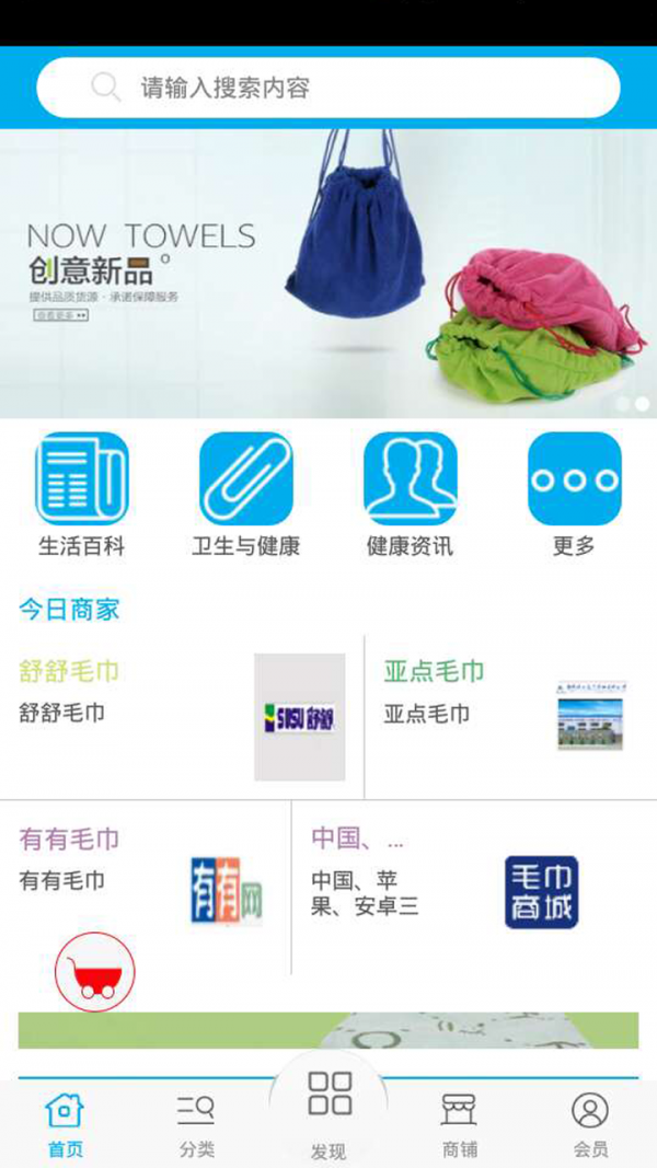 毛巾商城app是基于移动互联网平台而研发的手机客户端,在此平台上,用户可以了解到毛巾商城服务最新的资讯、互动服务信息,并可以提供商户、行业渠道商、行业客户、终端用户等互动交流信息。毛巾商城app对现有商务平台平滑扩展,无缝衔接,为客户和商家打造完美、多元化的服务体验,也能及时地与客户互动交流,合作会员还可以通过供求商机来展示自己的特色服务,拓展移动营销渠道,随时随地把握移动互联网商机。