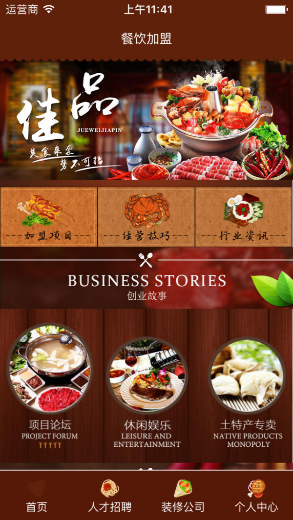 餐饮加盟APP是一个专门提供各种招商信息,商家产品,特色装修,以及各种成功的加盟者创业者的经验,旨在通过一条龙服务满足各类招商加盟者的需求,并给予初次加盟商更多的帮助!