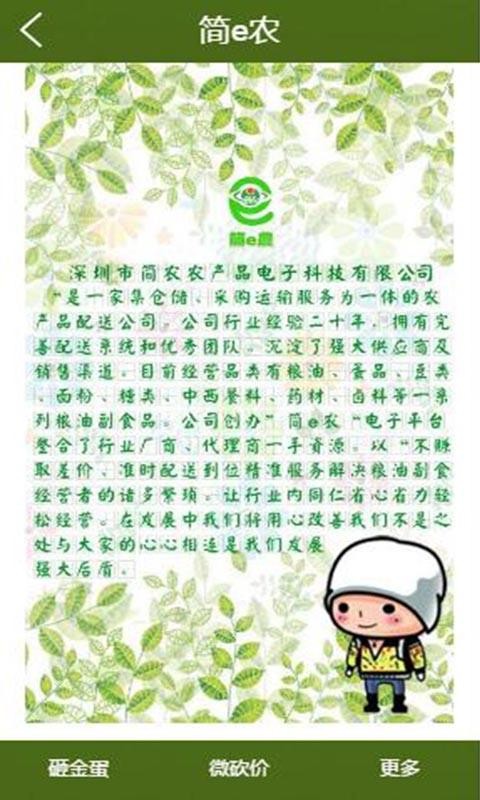 简e农app是一款网络购物应用,是东莞市掌睿信息科技有限公司推出的移动商城。在简e农app中你可查看农产品信息,了解行业资讯,以及在线选购商品等。
