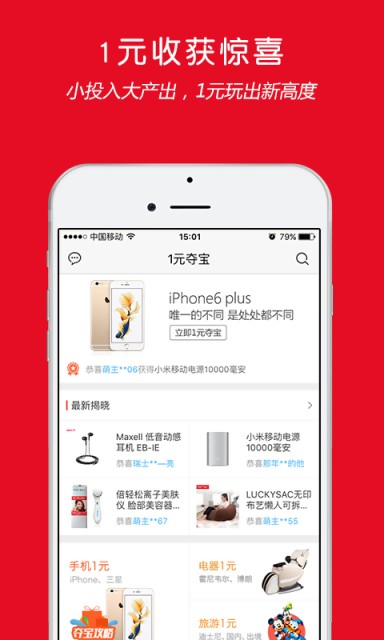 小投入大产出,只需花1元就有机会获得超值商品,零钱不再闲置,抢到就是赚到!