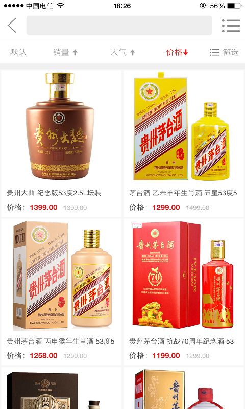 1、商品覆盖茅台系列,习酒系列,珍酒系列等贵州名酒。