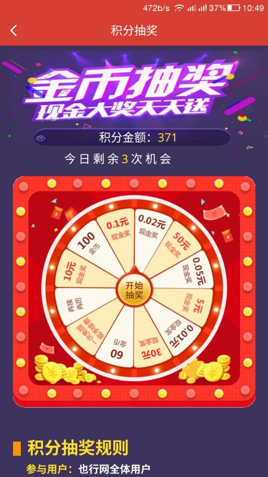 【金币抽奖】每日三次的金币抽奖,现金大奖等你拿