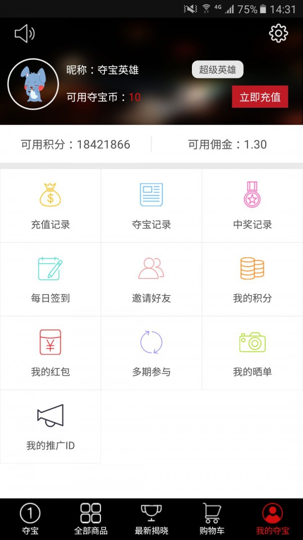 英雄夺宝以“快乐夺宝,惊喜无限”为宗旨,力求打造一个100%公平公正、100%优品保障、寄娱乐与购物一体化的新型购物网站。