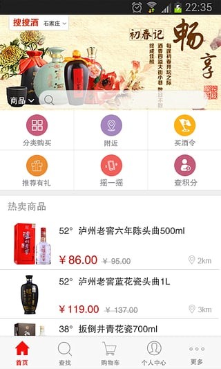 搜搜酒app是一款为广大消费者打造一个网上便捷购买酒水的平台,消费者可以通过电脑、手机等渠道,搜索附近搜搜酒的会员店,查看该会员店页面,进行下单购买,会员店按照要求进行及时的高质量服务配送。