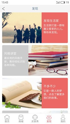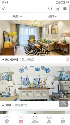 -商城:按风格和品牌分类商品,另有搜索、购物车和分享功能。