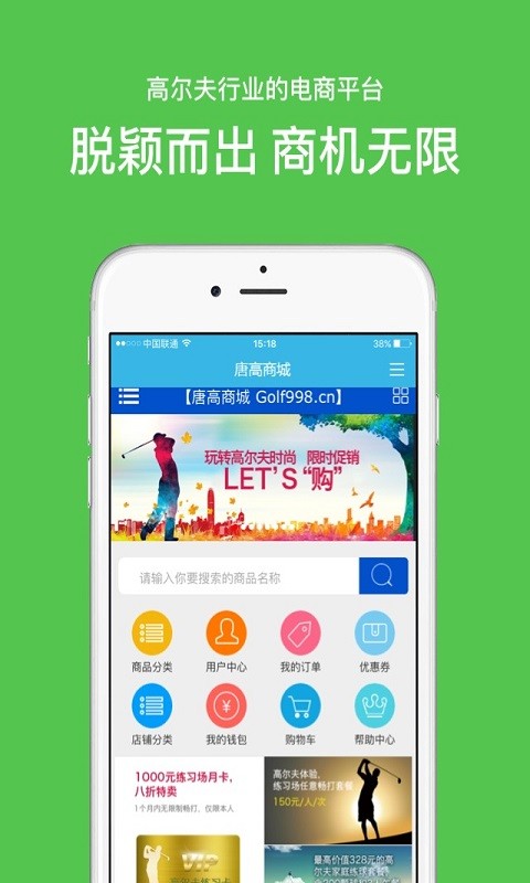 唐高商城是一款网络购物应用,唐高商城app汇聚各地的高尔夫练习场与球场的优惠价格的打球卡,以及优惠价格的高尔夫球具、用品等,面向高尔夫爱好者和专业人士。同时唐高商城app还为高尔夫行业的各类型企业提供展示,促进企业达成商务合作。