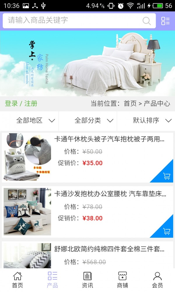 掌上家纺网app是一款电商购物应用,掌上家纺网app为用户提供一个家纺购物平台,方便用户在这里选购各类家纺,为用户生活购物带来便利。