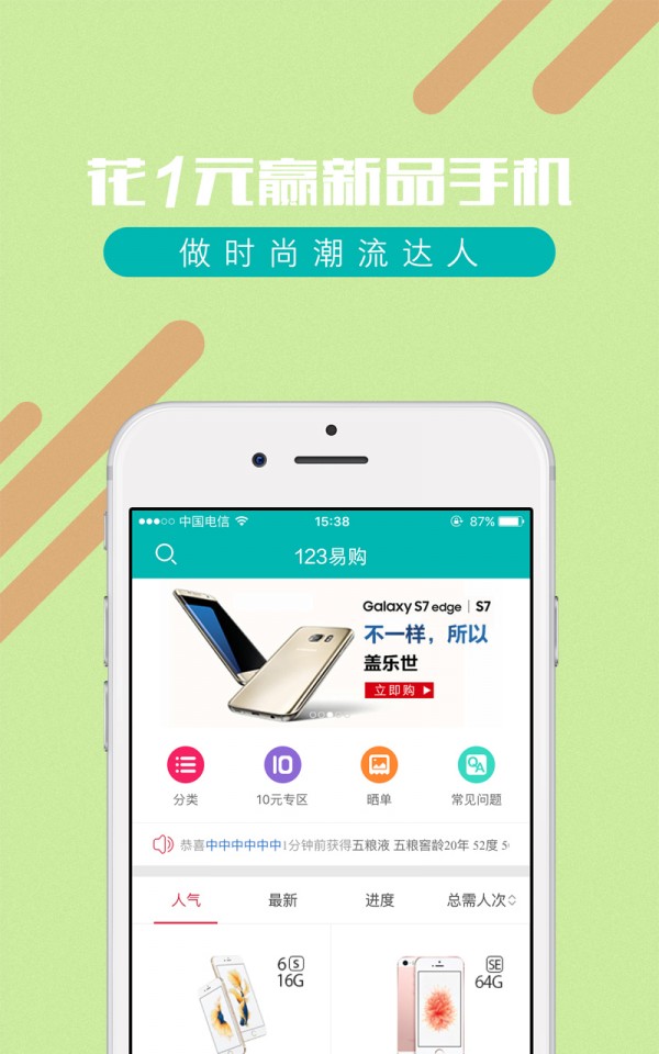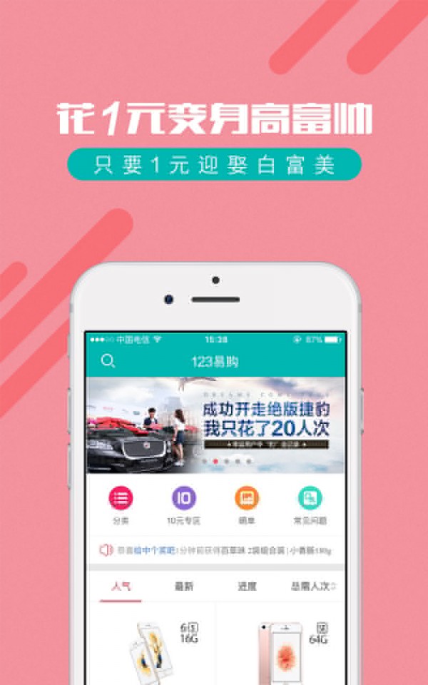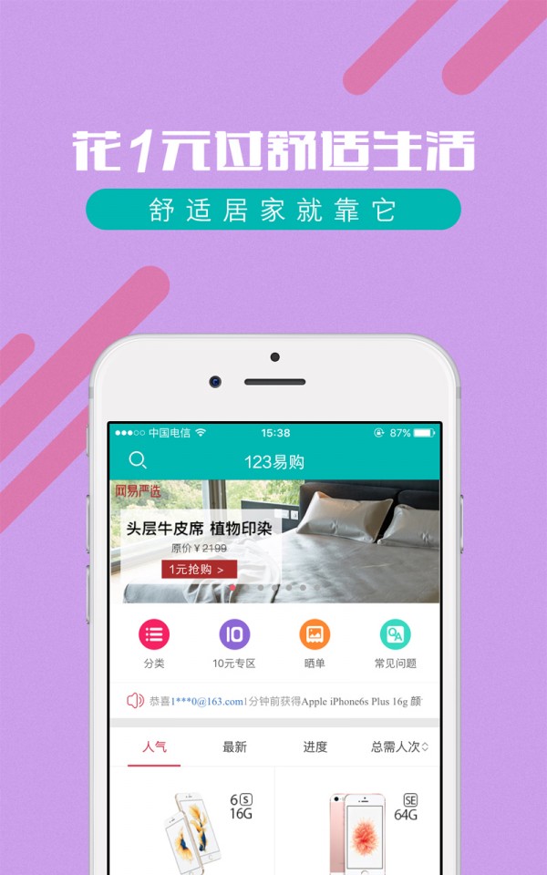 123易购,引入了当下互联网购物概念,众筹模式,每个用户只需1元就能获得高大上商品,,让购物更有惊喜,软件体积更小,玩法更多样。