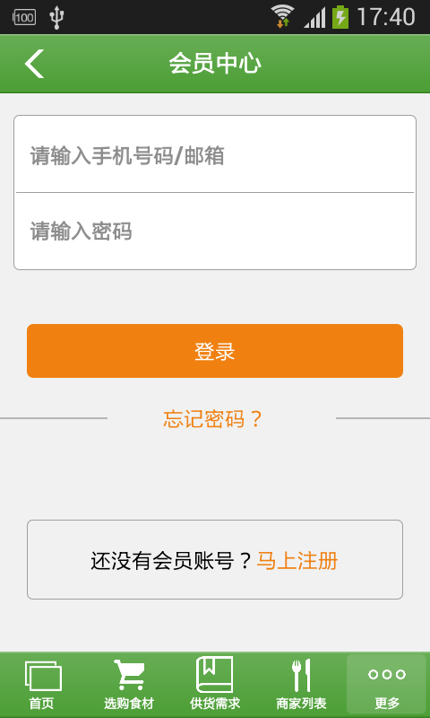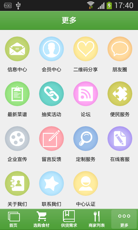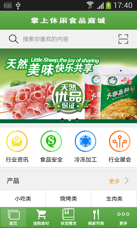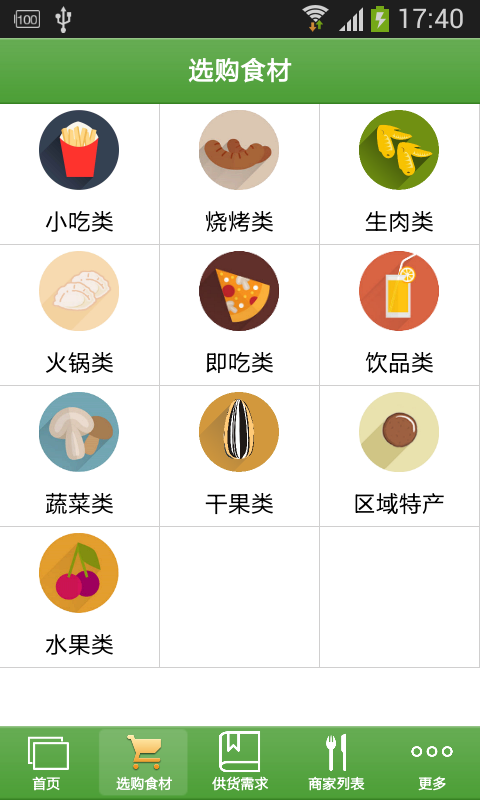 【选购食材】:本应用提供相关各种产品分类,方便客户查询购买。