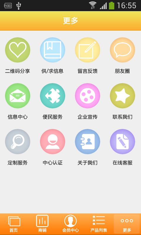 【产品列表】:本应用提供相关各种产品分类,方便客户查询购买。