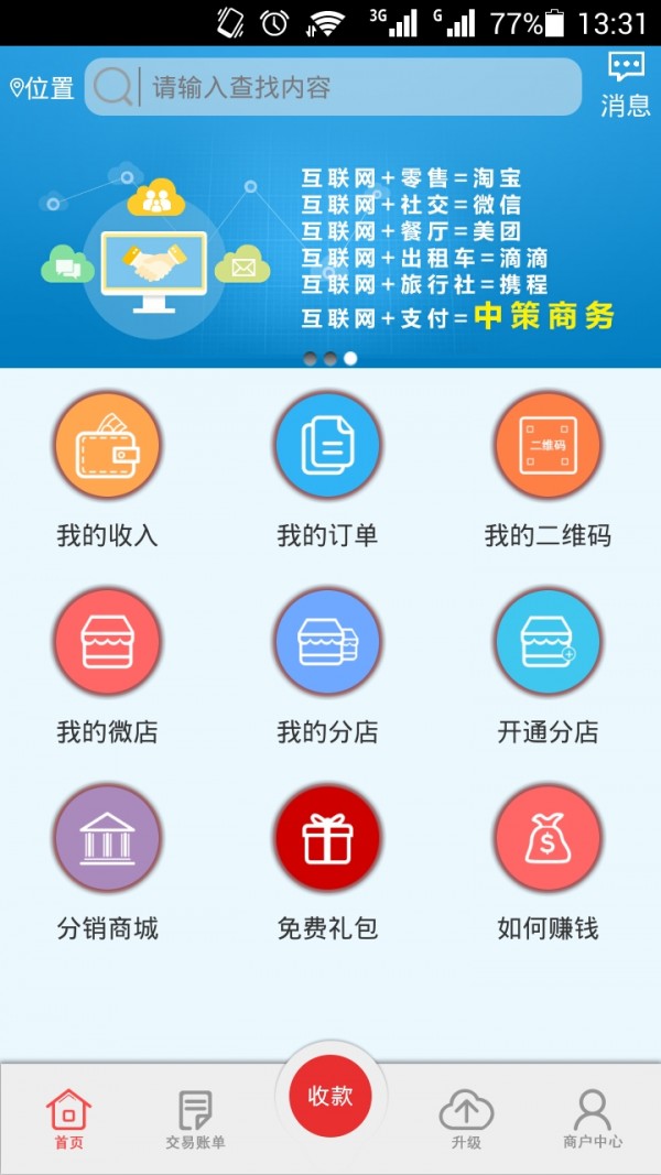 杭州中策电子商务是基于手机APP支付服务项目的专业性服务机构,注重项目服务质量,汇聚了一帮资深的产品经理和优秀技术人员。服务过上千从事各类群众。主要服务领域移动互联网及个人手机应用系统。 “中策商务”手机应用软件可应用于o2o支付领域、免费方便开通微店等,很好地把“互联网”与“支付”相加在了一起!
