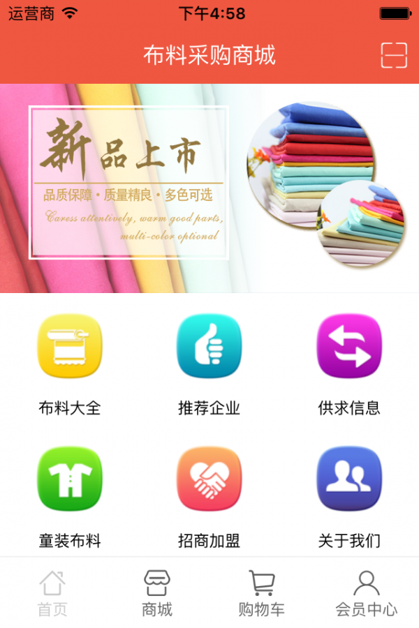 布料采购商城app是一款购物商城应用,布料采购商城app为用户提供一个布料购物平台,精选大量优质布料,让用户购物更方便。