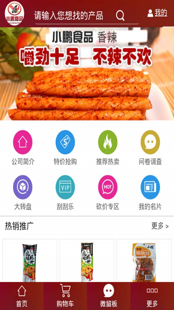 小鹏食品app一个专业从事湘味面粉熟食类电商平台,小鹏食品app由掌商科技众云推一站式移动营销整合服务打造,致力弘扬美食文化,传播健康理念,欢迎下载。