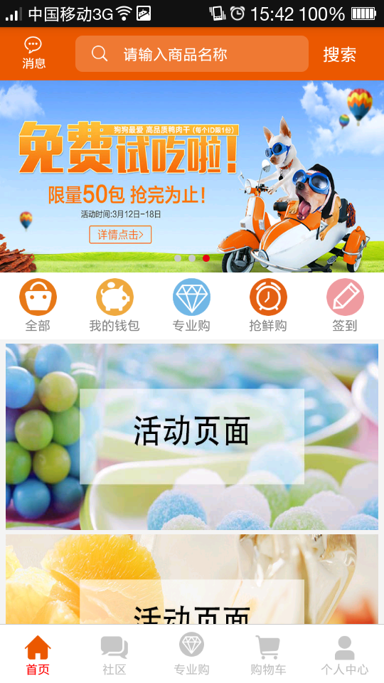 当前版本为1.0测试版,该版本拥有商品搜索、浏览、购买、支付等功能。还有通过获取一定的积分获取相应的积分商品、分享二维码邀请好友加入!