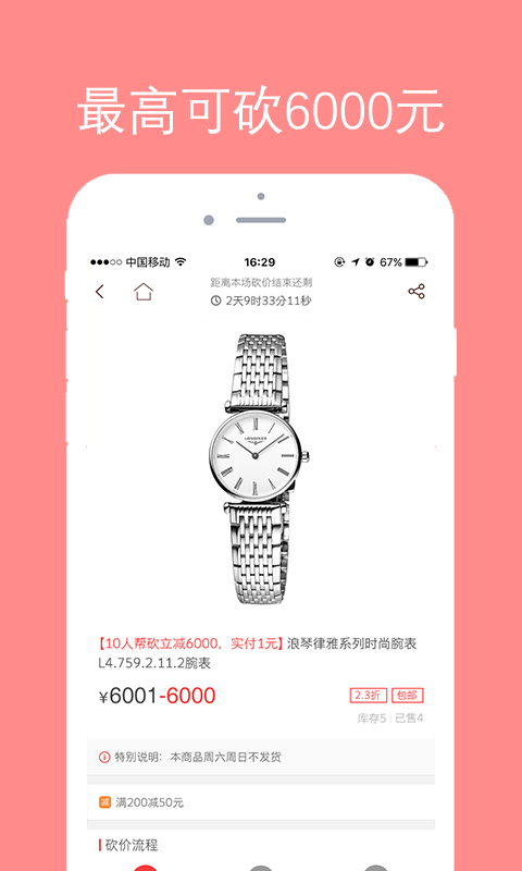 张飞砍价,一款邀请好友帮你砍价的限时特惠APP。只要将每日优选砍价商品,分享至朋友圈、微博,当好友点击“帮Ta砍价”,便可享受一次降价。砍价好友越多,商品价格越低!更有机会1元抢iPhone!大牌秒杀专区,砍价多多,实惠多多。张飞砍价,是你必备的手机购物省钱神器!