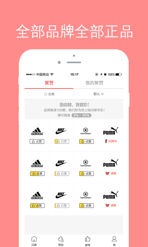 【1元砍价、直击底价】 每日精选Adidas、Nike等国内外大牌商品,限时限量1元砍价、全国包邮!