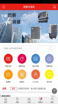 我要压缩机app是一款针对空压机行业的手机购物软件,这里有各种分类的空压机以及配件产品,为用户购物提供便利。