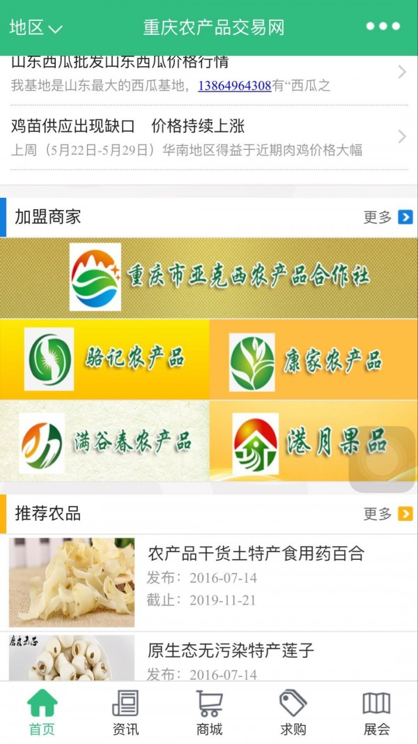 重庆农产品交易网是中国信息化产业发展中心认证的诚信云商移动互联网客户端;为广大从事农产品行业的朋友以及企业提供了良好的信息交流与发布平台