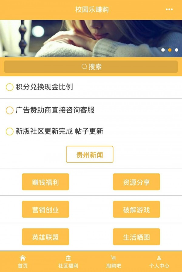 校园乐赚购app是一款校园购物平台,为贵州各大高校学子购物提供便利,及时了解最新促销活动,还可以在线阅读贵州新闻。