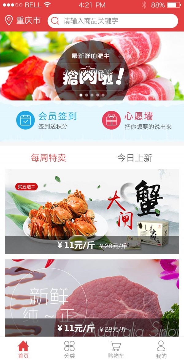 一个新型的生鲜产品购物APP