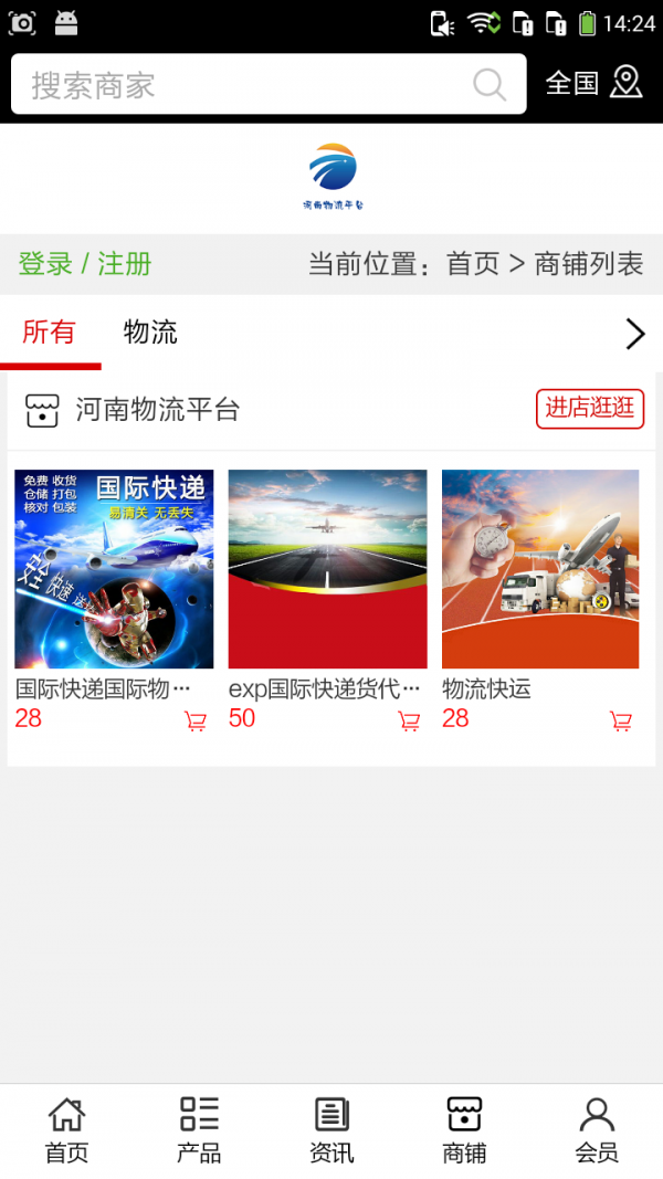 河南物流平台客户端不仅具备购物、查询订单、搜索商品、行业资讯和产品评价等常用功能,而且还实现了手机版特有的会员注册登录、广告位、招商开店等功能。目标是整合当地品牌商、生产商、经销商,为商家和消费者之间提供一站式解决案。欢迎下载使用!