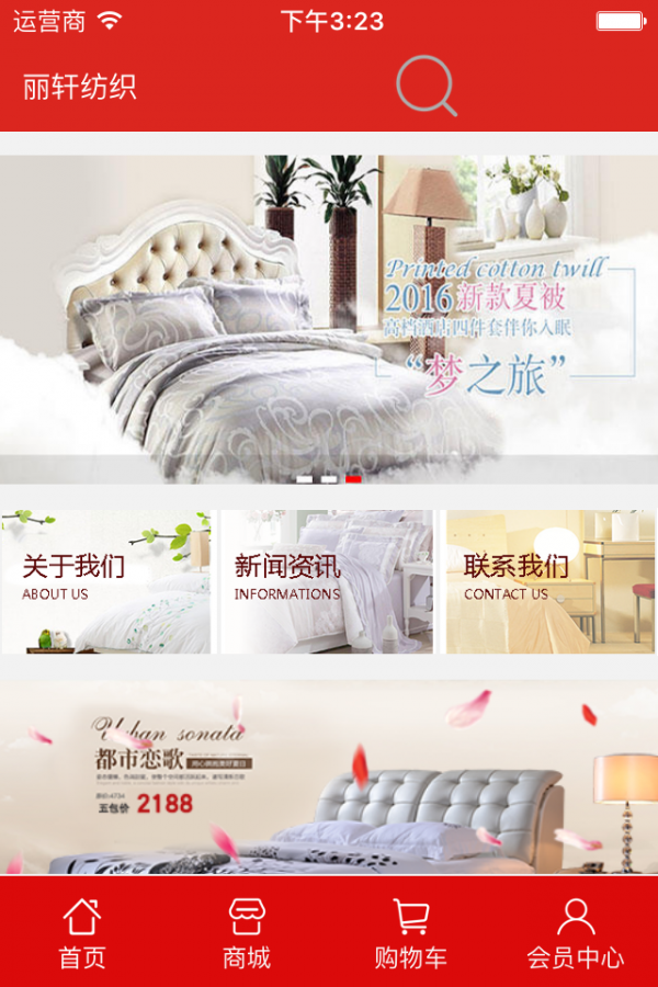 丽轩纺织app是一款网络购物应用,是本科信息提供的移动平台。在丽轩纺织app中大家可在线选购物美价廉的纺织产品,了解行业动态信息,以及全程跟踪订单信息。