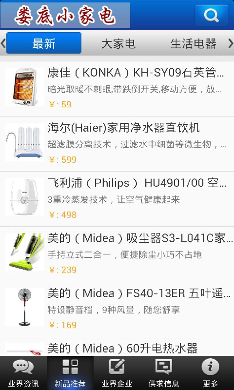 娄底小家电app是移动互联网平台上娄底地区家电行业权威的资讯平台,为您实时推送最新的行业资讯、产品信息、供求信息、商家目录等信息,专注于打造最便捷的服务。