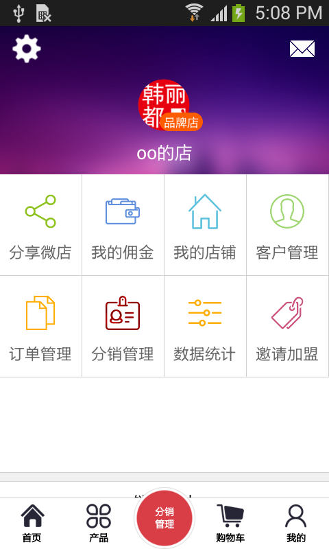 【分销管理】:分销商可以查看下级分销的信息并可以邀请好友进行加盟分销,发展分销客户。