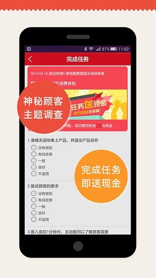 用户可以极优惠的价格进行品牌商品抢购,并参与神秘顾客调查获得更多的返利;